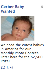 You all know how I love facebook ads. This one surely does not disappoint. It would appear our friends at Gerber are searching for a new baby to represent their brand. No, they are not a client, and no I do not feel either one way or another about their product. Honestly, since Danny is 17 (years, not months) I am embarrassed to say I don’t even know if that is the brand I bought for him.