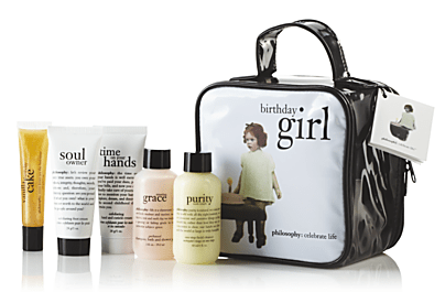 philosphy. Ok this product line had me at hello. Or should I say they had me at birthday girl. Here is a line of cosmetics that has ME written all over it. A lover of fine design and deep thoughts with a side of nostalgia and well… Philosphy; I am slain by this company.