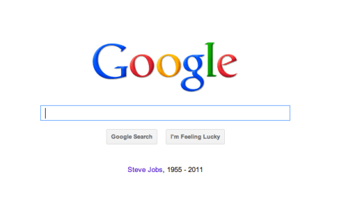 It has been a few short hours since the announcement of his passing, yet the web has already exploded with tributes, both simple and clever… reflecting the man they remember. Even Google – a fierce competitor – posted an understated, extremely classy gesture tonight – a single line of text with a link to Apple’s home page.