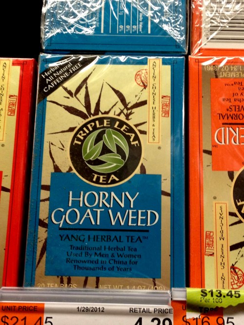 Yelled to the hubby: “Hon!! Have you heard of the Horny Goat Weed?” “It’s an energy supplement. Like Yohimba or caffeine.” Huh?He truly lives on another planet and shares infrequently.