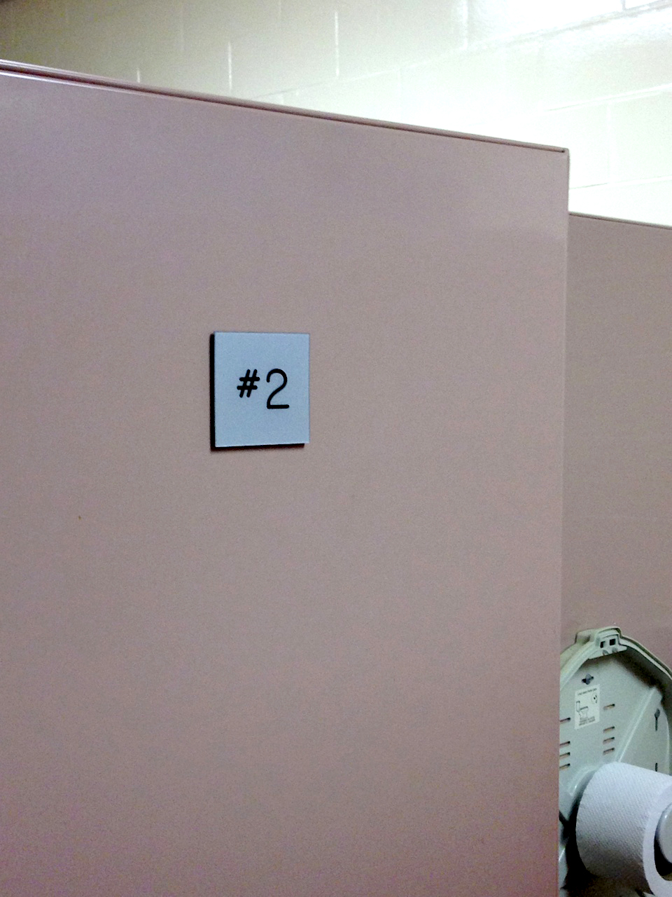 Which brings me to the photo. This bathroom resides at the old Pfizer building in Brooklyn. Yes, all the stalls were numbered, it wasn’t as if this was the only one designated for making “#2”. But the fact that I serendipitously wound up with this stall simply had to be fate, no? Of course I had to take this picture… it was my obligation. I mean, I am the one who has brought you such posts as We are #1…, It’s Toilet Season, Toilet Paper Advertising Smackdown and my absolute favorite Can it Fit in a Toilet?