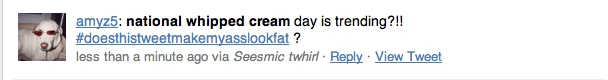 My (albeit long-winded) point here is this; brands need to treat social media like PR on steroids. Once you let out a tweet, Pandora’s box opens and you can’t take it back. I find it hard to believe that a senior strategist had any idea about this stream. In fact, I don’t think even a mid-level brand person could possibly think this was a good idea. UPDATE: it has been determined that the tweet came from none other than Kenneth Cole, himself. This is a frightening lesson in why the CEO needs oversight. Read Todd Defren’s post with the hysterical title: In social media everyone can hear you fart.