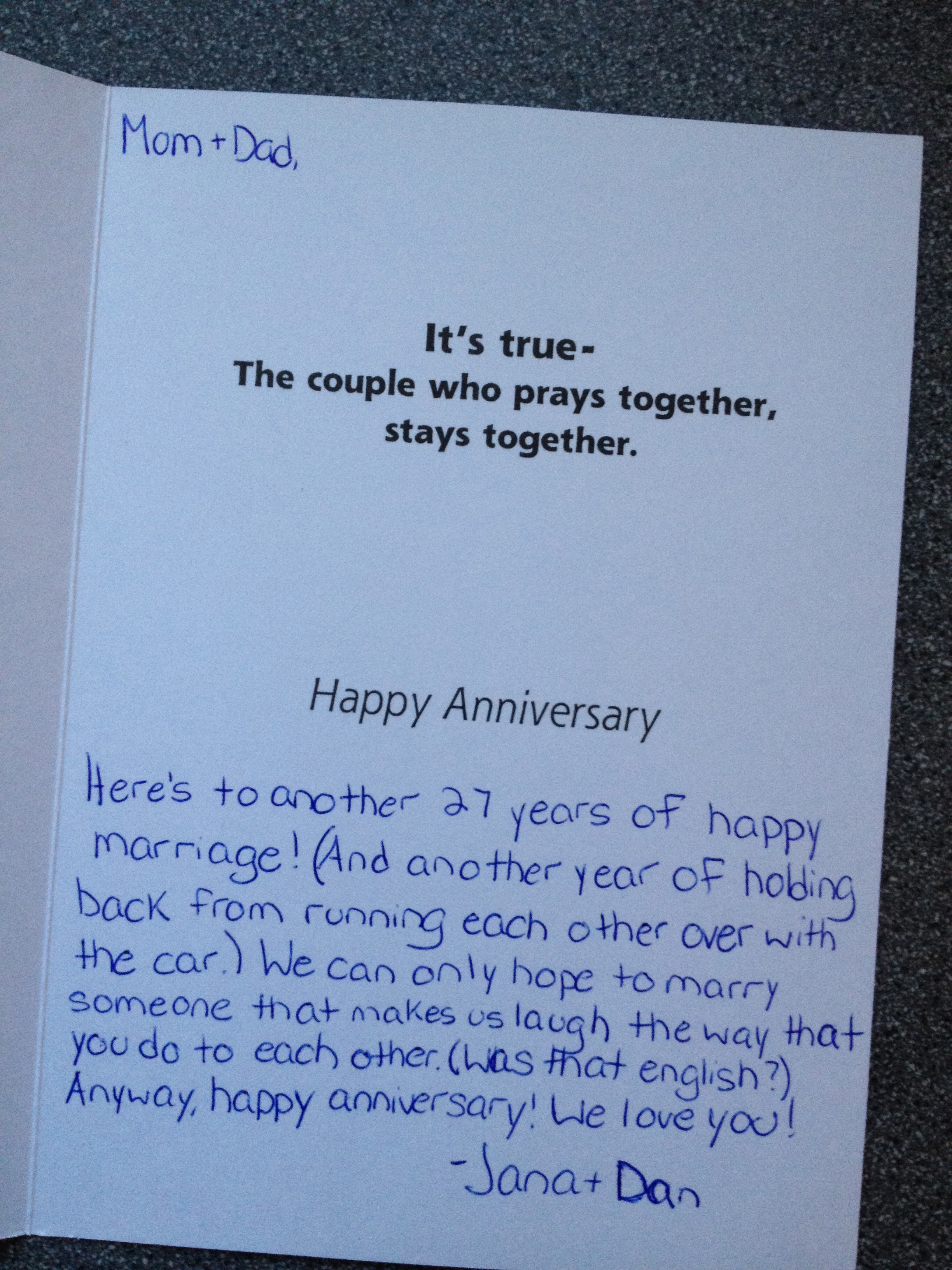 This was what they wrote inside. And when I say ‘they’ I mean Jana. Sorry Dan but we know you had no idea it was our anniversary today.