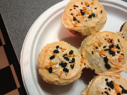 Usually I would lie in bed and just chill, but yesterday I decided to get up and bake the Funfetti Halloween cupcakes instead, because… well, because if I did not bake them then I would have to wait a whole year. (Funfetti is sort of a religion in these parts)