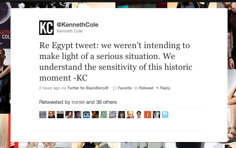 UPDATE 4PM: Kenneth Cole respondes on facebook. Is this enough or do the sharks continue to circle?